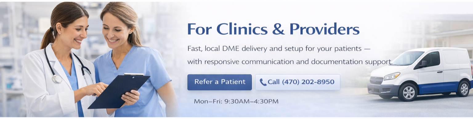 Fast, local DME delivery and setup for your patients - with responsive communication and documentation support.
